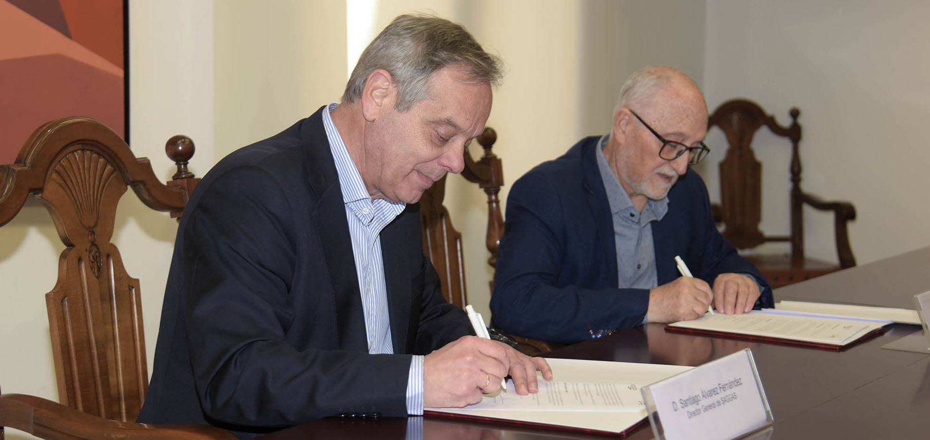 El presidente de la Comisión Delegada de la Fundación Bancaja en Sagunto, Alfonso Muñoz, y el director general de Saggas, Santiago Álvarez, han renovado un año más su colaboración con la firma de un acuerdo por el que la planta de regasificación apoyará, dentro de su política de responsabilidad social, la programación cultural que la Fundación Bancaja impulsa desde su sede en Sagunto.